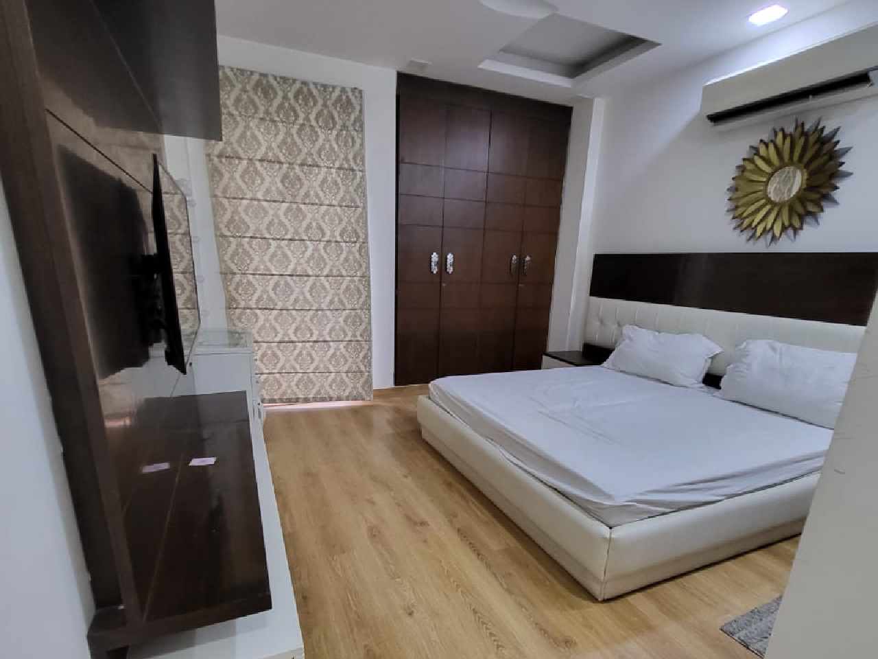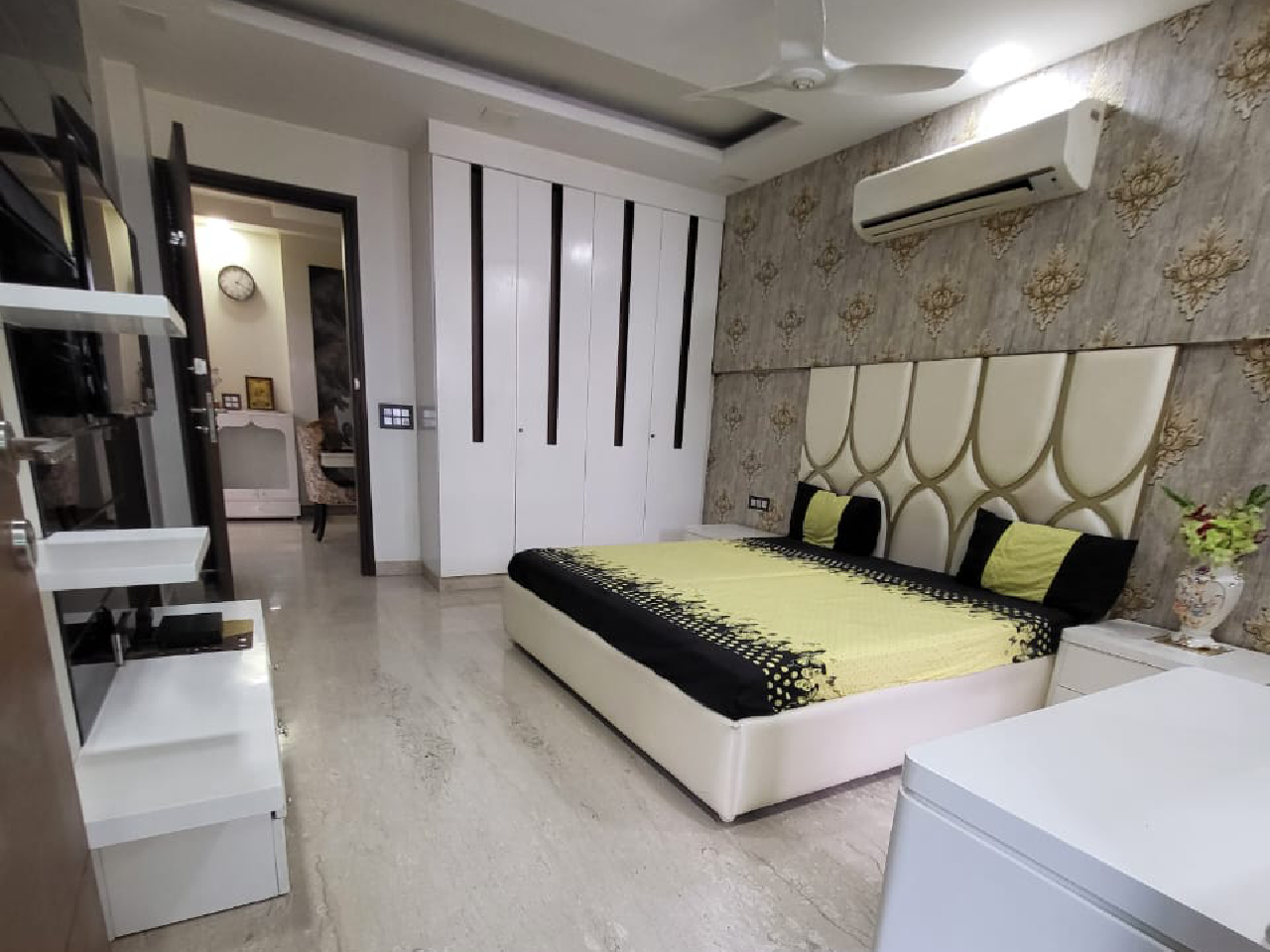 For those requiring even more space, our 3BHK serviced apartment in Vasant Vihar provides a luxurious and spacious environment, perfect for larger families or groups. The expansive living area is tastefully decorated with high-end furnishings and features an open-plan design. This apartment includes three spacious bedrooms with king-size beds and high-quality linens, and three modern bathrooms with premium fittings, including an en-suite in the master bedroom. The gourmet kitchen boasts top-of-the-line appliances. Additional amenities include air conditioning, high-speed Wi-Fi and daily housekeeping. Guests also receive a complimentary welcome pack and benefit from 24/7 security, with full access to on-site amenities such as a private garden and fitness center.